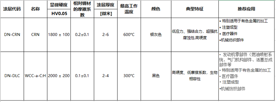 • 低摩擦系数涂层